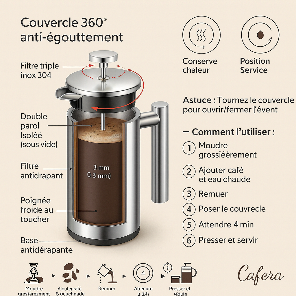 👉 Un design pratique, une isolation optimale et la qualité d’une véritable cafetière à piston isotherme.