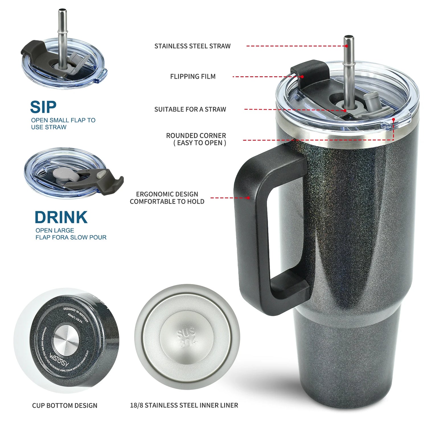 Ce tasse isotherme grande contenance garde vos boissons chaudes ou froides pendant des heures, sans avoir à recharger sans arrêt. L’anse intégrée permet de le transporter facilement partout (voiture, bureau, sport), et le couvercle limite les fuites pendant le trajet. Vous pouvez boire directement ou avec la paille réutilisable fournie. Simple à nettoyer, réutilisable, pensé pour une journée complète d’hydratation.